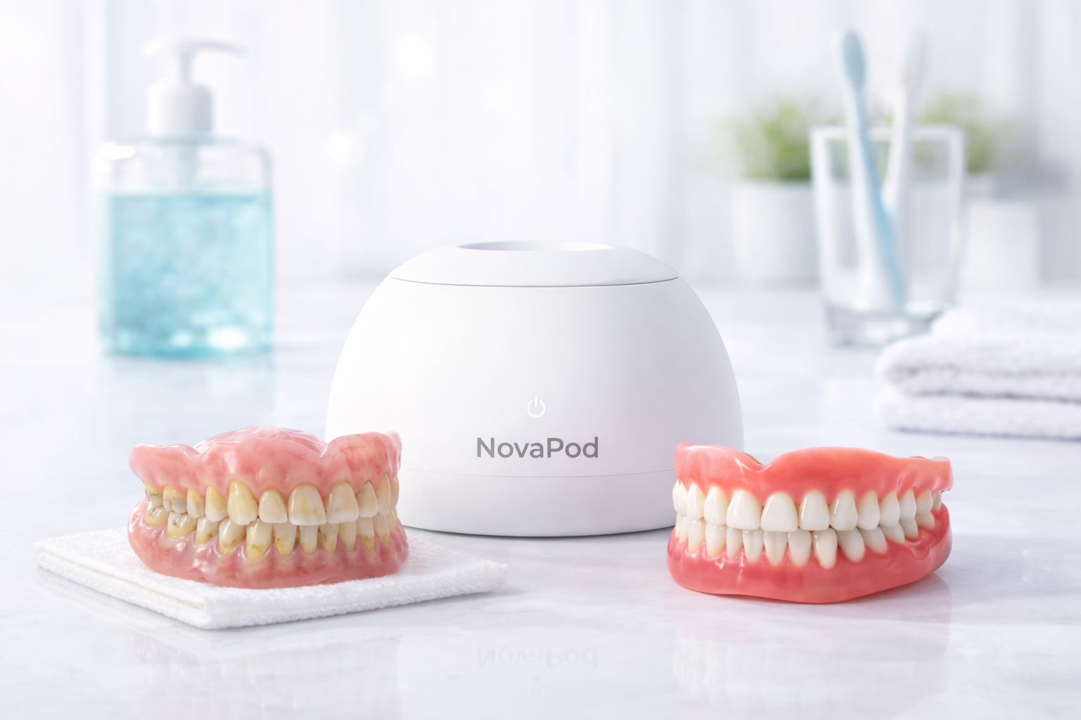 Dentures that aren't just visibly clean and brighter, but deeply disinfected. A fresher mouth and the peace of mind that you're protecting your health.